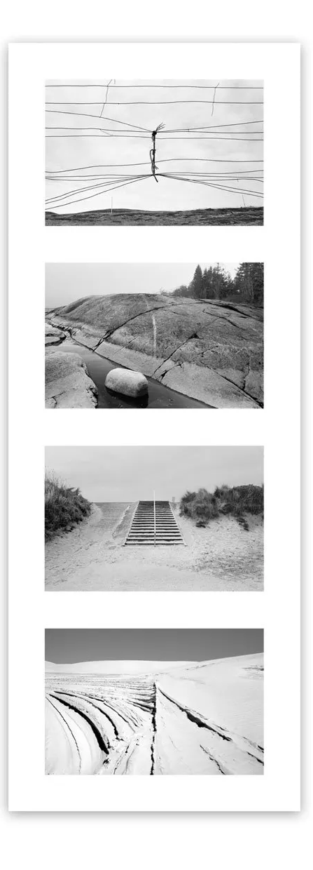 Les œuvres ou séries qu'il compose dans un second temps découlent rarement d'un projet antérieur aux prises de vues, celui-ci prenant favorablement corps à partir des archives régulièrement alimentées, suivant un imprévisible cheminement. Il s'agit en fait, depuis des éléments disparates accumulés au fil du temps sur des territoires distincts, de former un réseau combinatoire d'images et d'œuvres en perpétuel remaniement. Différentes frontières, avérées aussi bien qu'imaginaires, s'y articulent, opérant un passage du monde extérieur vers une construction mentale où se déploient symétries, échos et entrecroisements.