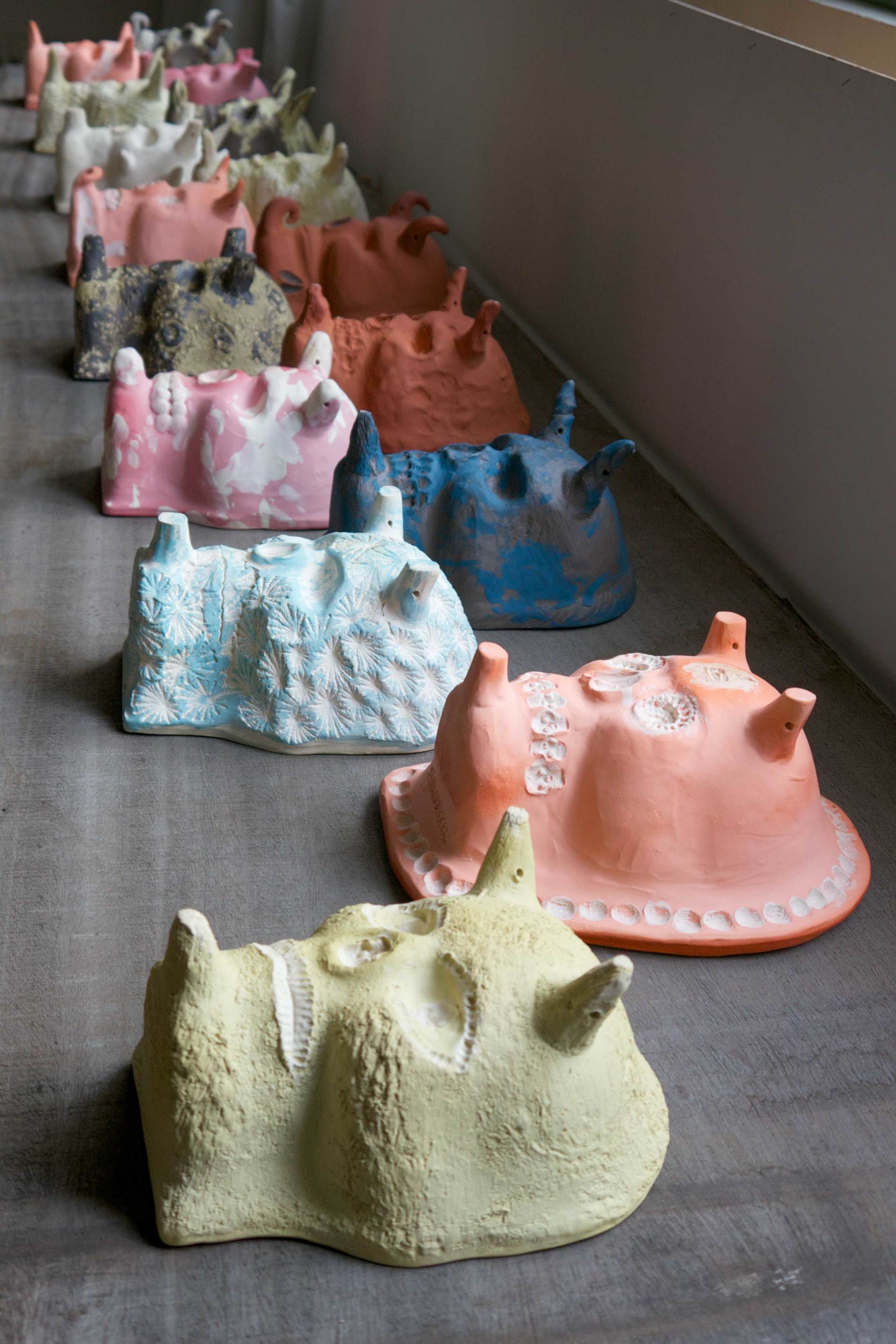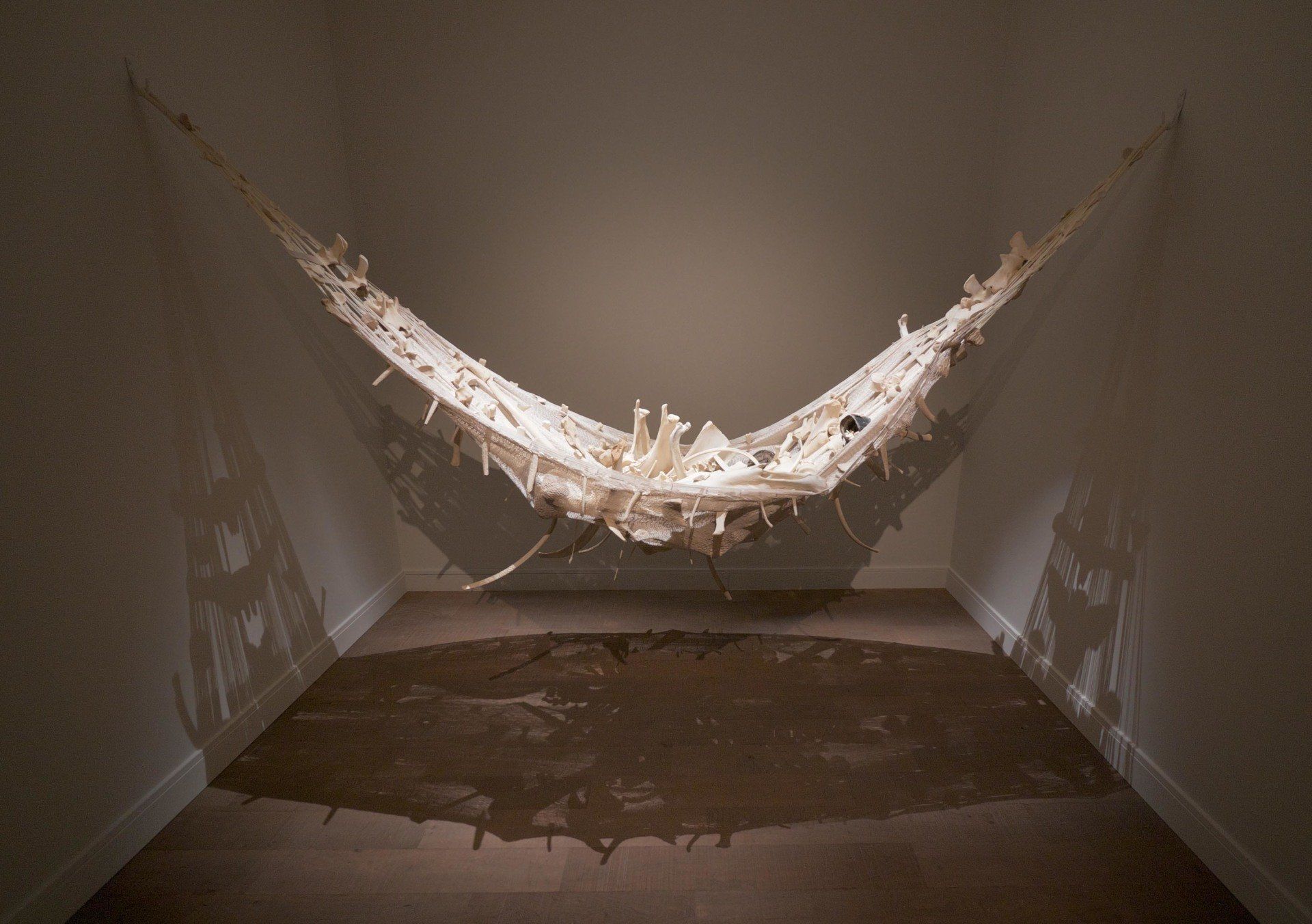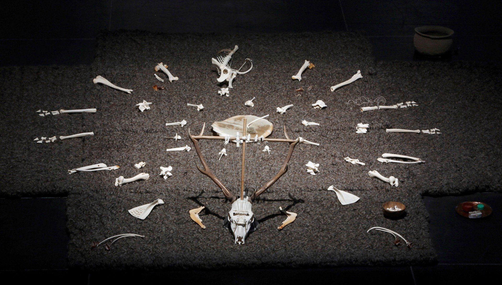 Les oeuvres d’Erik Nussbicker éprouvent notre regard sur la mort, les limites de notre enveloppe charnelle, notre place dans la nature. À la fois plasticien, performer et scénographe, tantôt il invente et joue des instruments de musique inédits, notamment façonnées à l’aide d’ossements d’animaux ou d’exosquelettes d’insectes, tantôt il façonne des œuvres qui font résonner le bronze sacré, qui bruissent de mouches, ou qui reçoivent les vibrations colorées d’ondes lumineuses. Hybridations de la nature, ses œuvres sont pour l’homme un terrain d’action : souffler, jouer, nourrir, méditer. Des rituels apotropaïques pour mieux comprendre le monde, nos origines, notre finalité.