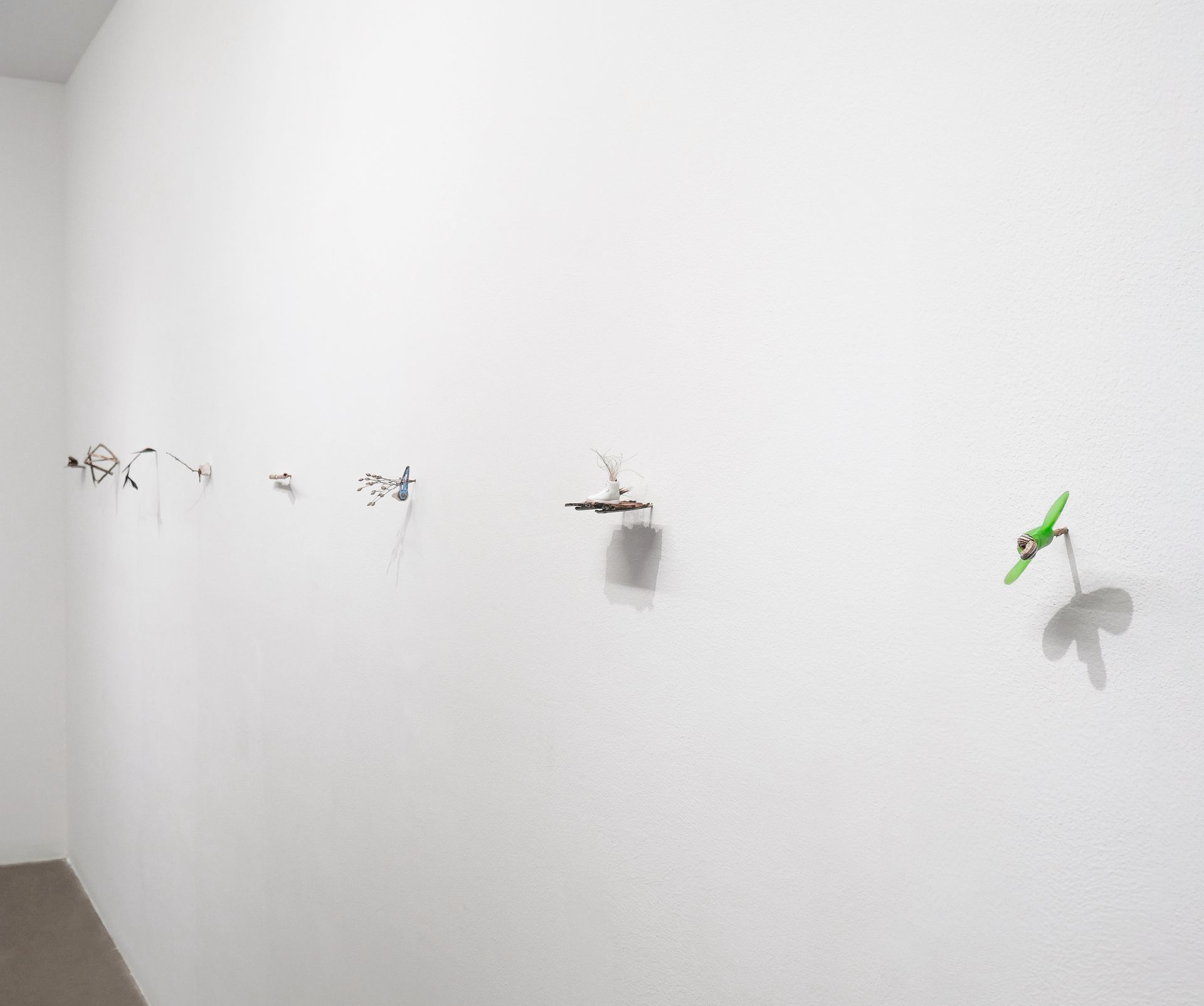 Les objets, par leur forme ou la lecture de leurs matériaux, demeurent en lien étroit avec l’endroit d’où ils proviennent et ne s’en émancipent jamais complètement. Chaque matériau d’origine est ainsi lisible dans l’œuvre. En faisant revenir la sculpture à sa propre essence, Sara Favriau entretient un rapport tautologique à la création : « une rose est une rose est une rose » [2] et le simple fait de dire le nom évoque la chose. En plus de délivrer le protocole de la série, chaque cartel des Petits riens énumère précisément les matériaux constitutifs de l'œuvre, qui demeurent identifiables dans leur état premier (exemple : «canne de Provence, pin d’Alep, graines de genévriers, glands de chêne kermès, aiguilles de pin, cartouches, débris de phare de voiture...»). Cette énumération méthodique rappelle les inventaires scientifiques ou ethnographiques, mais elle prend ici une autre dimension : elle donne une importance quasi encyclopédique à des fragments qui, autrement, n’auraient pas d’existence institutionnelle. Dans le même temps, l’artiste propose une réécriture de ces mêmes matériaux qui, par leur organisation linéaire et leur mise en rayonnage à 1,30 mètre de hauteur, évoque la logique d’une bibliothèque ou d’une grammaire visuelle. Ce faisant, le dispositif témoigne également d’une volonté de transmission d’un savoir qui échappe à toute finalité pratique. La série s'inscrit ainsi dans une démarche de mémoire vivante, où la migration des éléments glanés est perçue comme une métamorphose plutôt qu'une disparition. Chaque sculpture permet de scruter la trace du présent dans un cycle perpétuel de renouvellement et d’oubli.