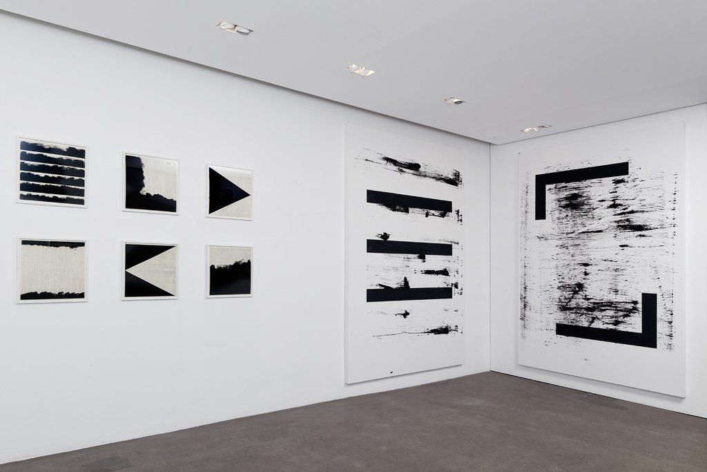 Nicolas Muller conçoit les œuvres de cette exposition selon une composante autoritaire et une succession de contraintes. Les formes libres, peintes sur de grands papiers, comprimées par une géométrie rigoureuse, subsistent et persistent. Une série d’éléments de voirie déclassés trônent, défaits, tandis qu’un un socle bétonné assure leur maintien. Dans un autre temps, Nicolas Muller propose la projection vidéo d’un paysage rural, filmé alors qu’il arpente l’enceinte extérieure bétonnée et grillagée d’un centre de détention. Les notions de périmètre, de déambulation, d’exploration, lient les différentes pièces entre elles. Le dessin, la ligne, le tracé s’imposent à nos yeux, qu’il s’agisse d’un trait de pinceau parcourant l’espace de la feuille, d’une marche dont le trajet dépend du plan architectural d’une prison ou encore d’un poteau de voirie froissé, plié agissant comme un ligne oblique dans l’espace d’exposition.