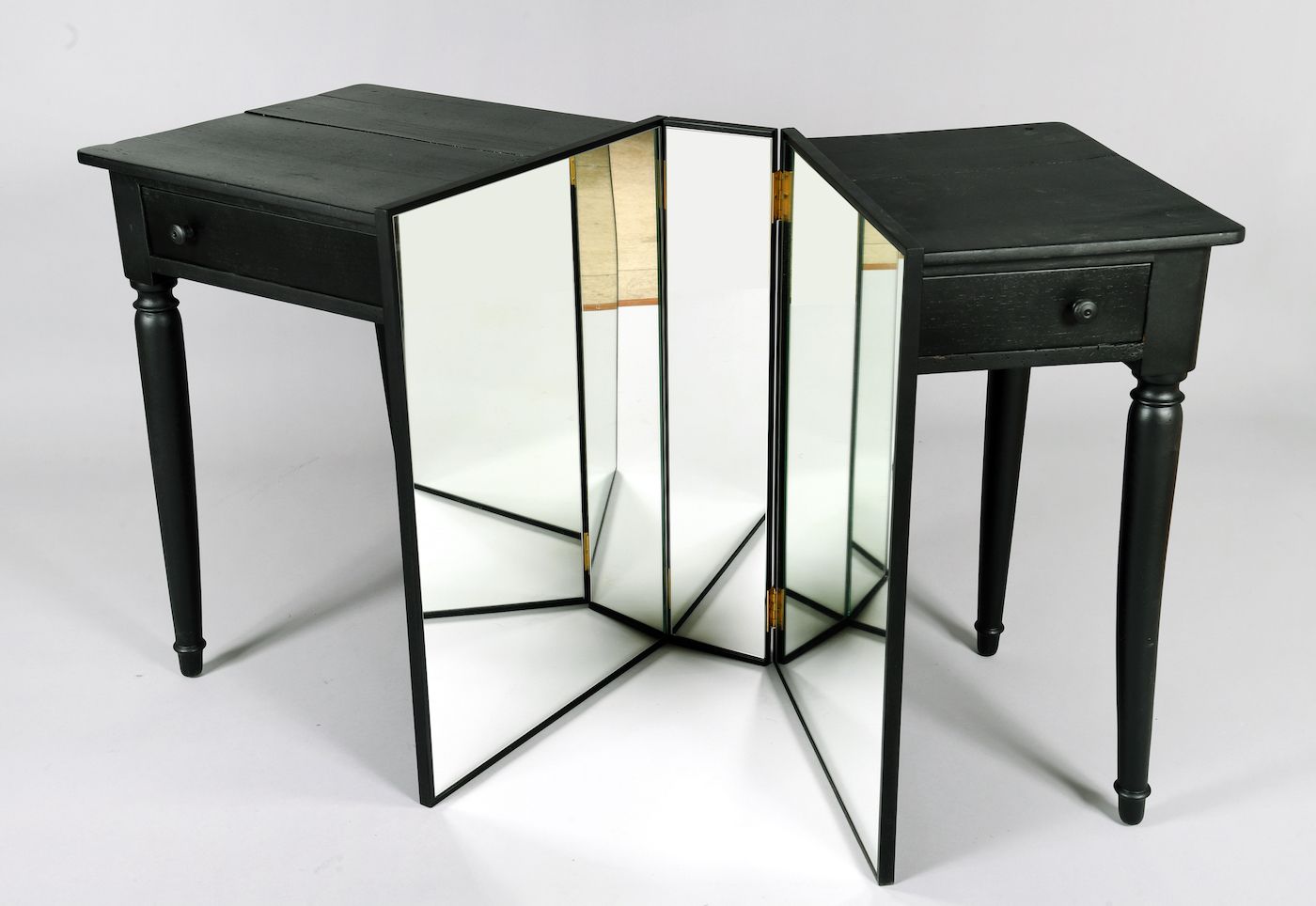 "Mon travail, en général, est une réflexion sur « le mobilier intérieur » : sur les objets qui nous habitent, les positions mentales que l’on adopte ou qui font que nous sommes capables ou non d’adaptation. C’est un travail simple de sculpture avec la table comme socle idéal et toutes les préoccupations qui se rattachent à un travail de volume mais qui se situent dans « l’entre ». Il ne s’agit en aucun cas d’un travail de design où le pratique est à l’œuvre mais au contraire un travail de correspondance où les possibilités (les manières d’aborder les situations) de chacun s’essaient : la rallonge, la table, le tiroir, le bureau… sont des espaces communs mais qui sont ressentis comme autant de situations particulières. Mon travail est un essai de représentation : le contraire d’une mise en scène ou d’une installation. Je développe le concept de « sculpture d’usage », pas pratique du tout mais tout à fait praticable, où l’histoire du regard est celle de la mémoire. Mes sculptures sont de véritables « architectures intérieures » qui mêlent à la fois des éléments de mobilier, issus de « l’habité » et de « l’habitat », et autres objets d’usage dont je questionne le sens. C’est un travail qui soulève les possibilités du vivre avec, d’abord au travers du regard puis des usages possiblement vécus, abordés. Je m’intéresse plus spécifiquement à l’étymologie de l’intime, ce qui est le « plus dedans », le « plus essentiel » (le langage,). Au-delà du quotidien, c’est notre capacité d’adaptation « intérieure » (le « lieu-dit », le « Decorum »), qui m’intéresse en interrogeant notre manière d’aborder certaines fonctions des objets. J’ai travaillé notamment sur les constructions et les aménagements personnels (psychiques et physiques) que nous sommes tous amenés à créer pour vivre et survivre. D’abord au travers du « décorum » (« convenance » en anglais) et de ses formes puis de ses déformations en relation. Le fond, la forme, le format ou formatage : nous sommes confrontés au « subir » pour ensuite mieux retranscrire et retransformer, accumulant des données culturelles, sentimentales, psychiques, familiales, politiques que nous devons ensuite réordonner. "